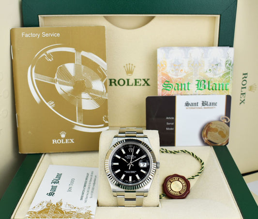 ROLEX 41mm 18kt White Gold & Stainless Steel DateJust II Black Index Model 116334